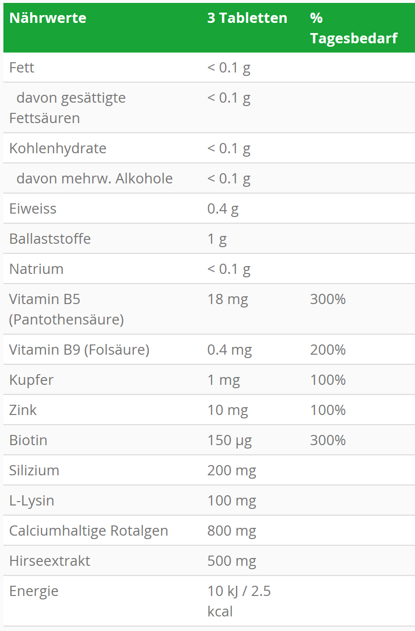 Siehe auch Burgerstein hair&nails (270 Tabletten).
