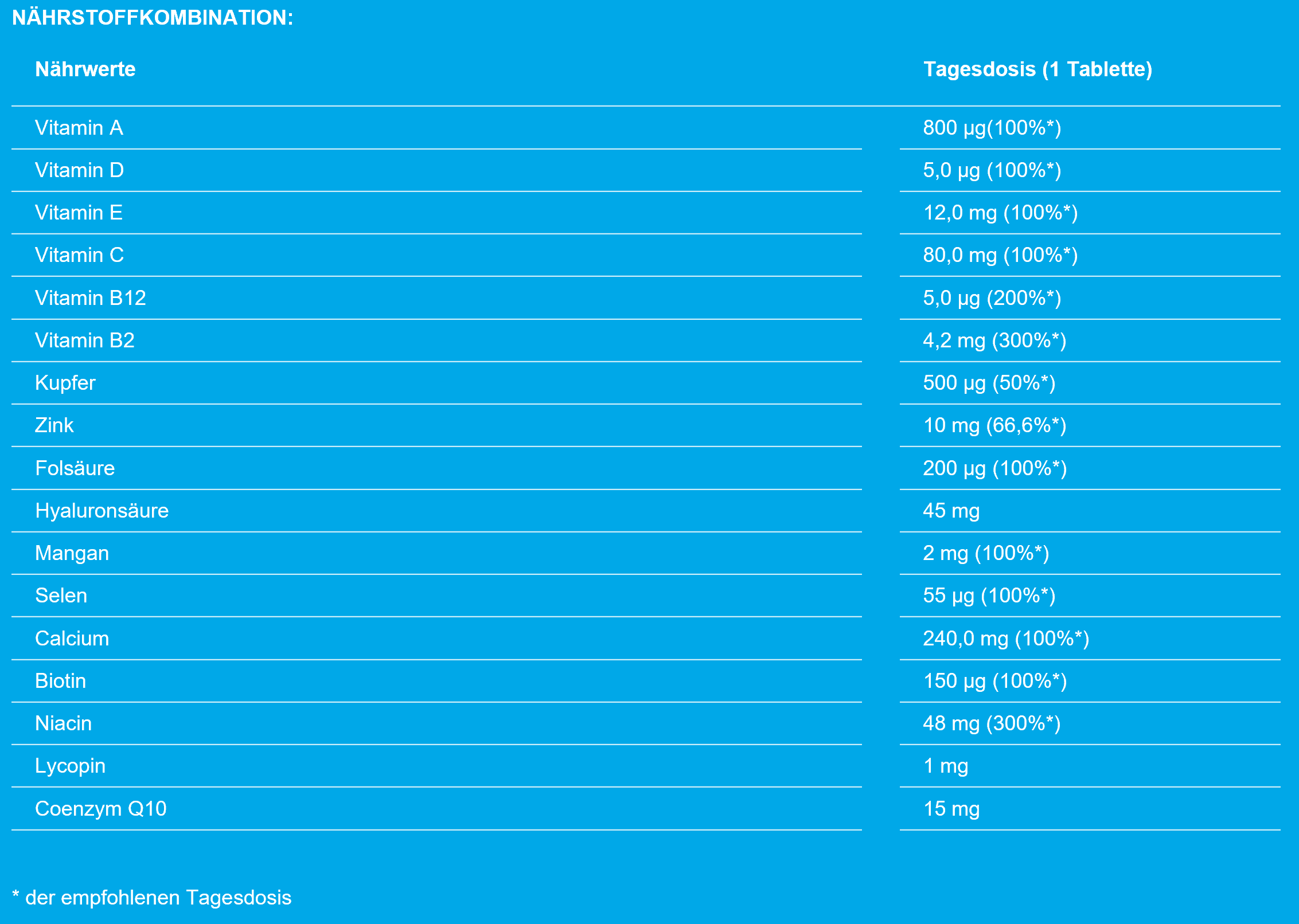 tetesept Hyaluron 45 mg + Q10 + Lycopin aus u.a. hoch dosiertem Vitamin C, Zink und Biotin trägt bei: