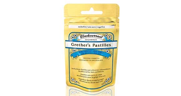 SwissHerbs Grether's Pastilles Clear Voice haben einen tollen Geschmack und enthalten Fruchsaft von schwarzen Johannisbeeren.