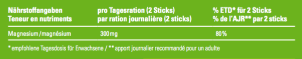 Direkt-Granulat Sticks mit 150 mg Magnesium zur Nahrungsergänzung.