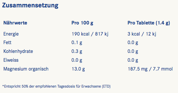 Magnesium (187.5 mg organische Magnesiumsalze pro Filmtablette)